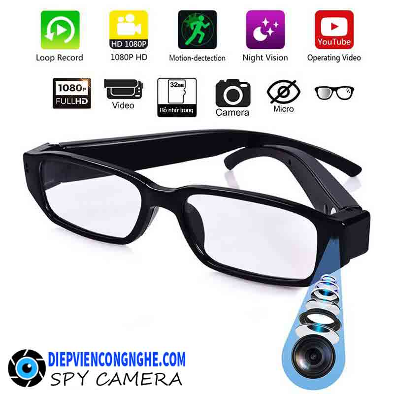 Camera ngụy trang mắt kính là sản phẩm vô cùng độc đáo với thiết kế giống y kính mắt thời trang thông thường. Nhưng bên trong tích hợp camera siêu nhỏ giấu kín rất tinh vi, rất khó phát hiện ra. Việc sử dụng thiết bị này cũng vô cùng tiện lợi vì không phải vướng tay như những camera quay trộm khác. Các bạn chỉ cần đeo như bình thường là có thể quay lén được đối phương mà không lo bị phát hiện.